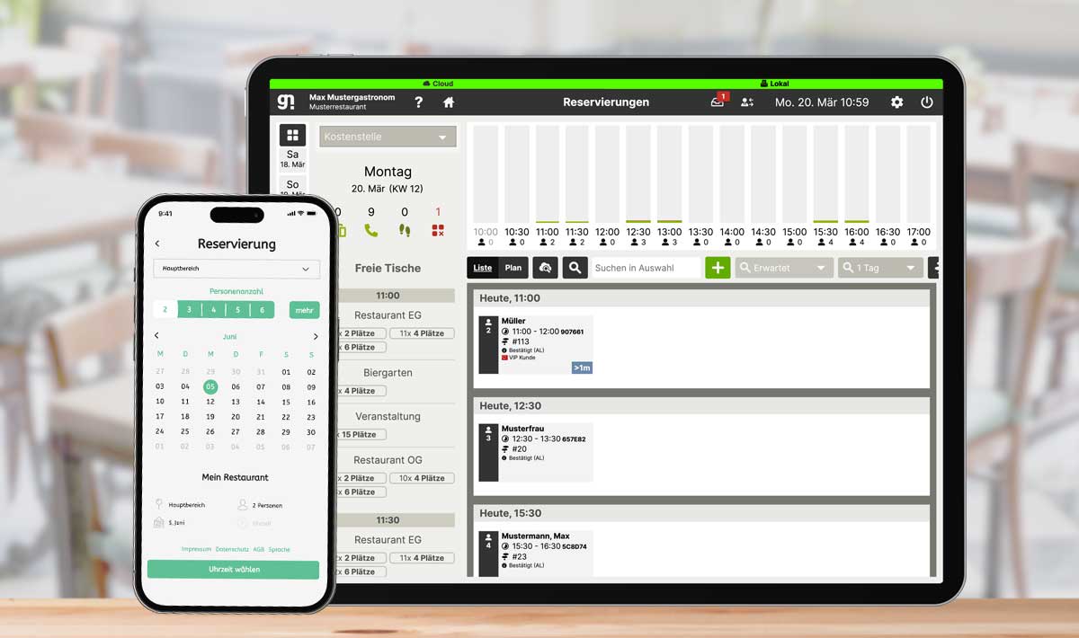 Immer aktuell und übersichtlich! Aufwendiges Reservierungsmanagement war gestern. Heute kümmert sich unsere Tischreservierungs-Software darum. Behalten Sie ganz einfach jederzeit die Übersicht und bieten Ihren Gästen einen tollen Service. Erfolgreich sein mit minimalem Aufwand und großem Komfort! Schauen Sie ganz einfach auf dem Tischplan nach, welche Plätze in Ihrem Restaurant noch frei sind. Und das in Echtzeit! Das digitale Reservierungsbuch können Sie und Ihre Mitarbeiter ganz einfach bedienen. Intuitiv und schnell: Ihr Service-Personal kann telefonische Anfragen einfach und bequem bearbeiten, im übersichtlichen Buchungskalender eintragen und auch wieder stornieren.
